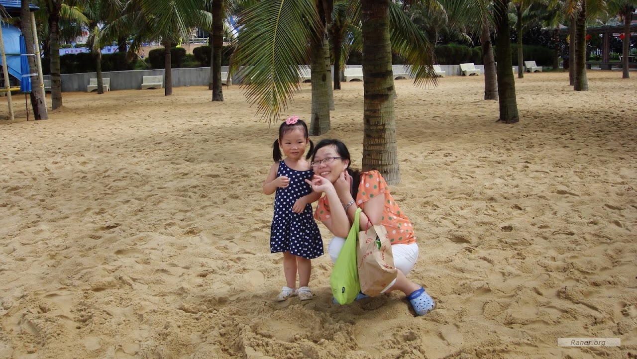 翌日早晨,再次来到沙滩上,游泳。不过为了然儿的健康,今天然儿就不玩水了,挖挖沙、拍拍照就好了。