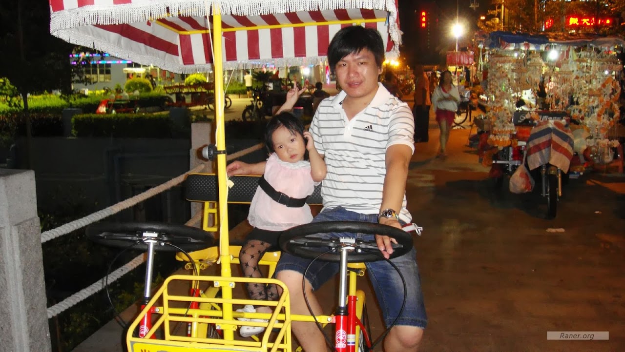 我们租了个2+1单车,把然儿就放中间给绑着。然儿都不用操什么心,就管好自己不掉下来就行了。没想到,不一会儿功夫然儿居然睡着了。。。