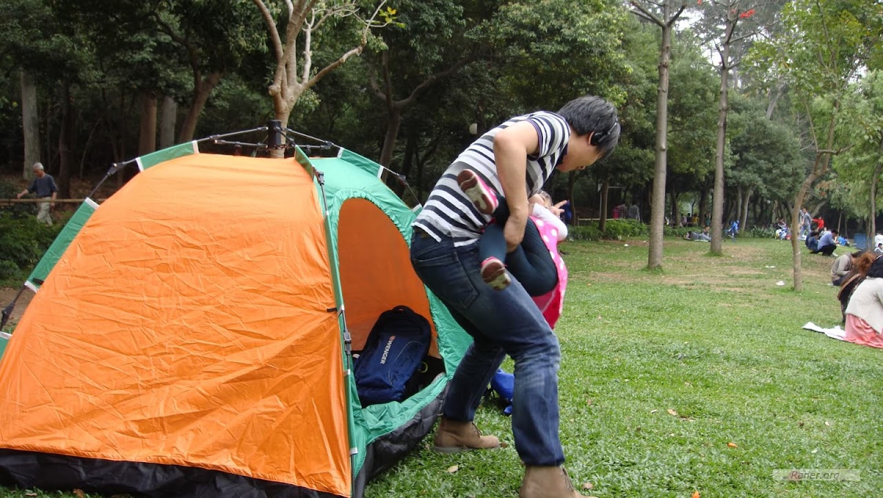 这次出来玩的主要目的之一——和上次一样,搭帐篷。然儿妈说要把帐篷搭到广州所有的主要公园去。我们正奔着这目标儿去了……不过这才是刚刚开始:)