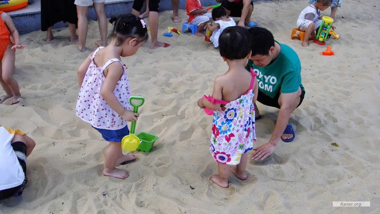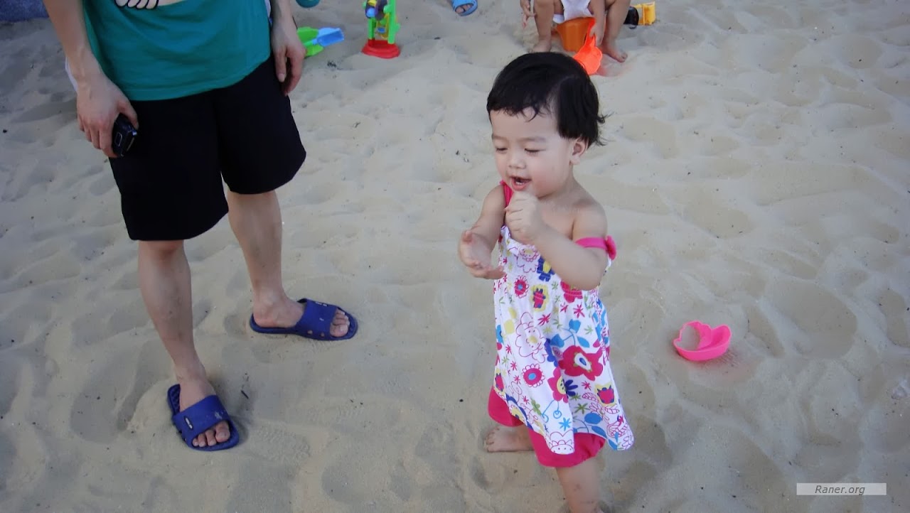 反正然儿玩沙玩得很开心。因为玩了很久都没觉着累,大人都要走了她还不想走。